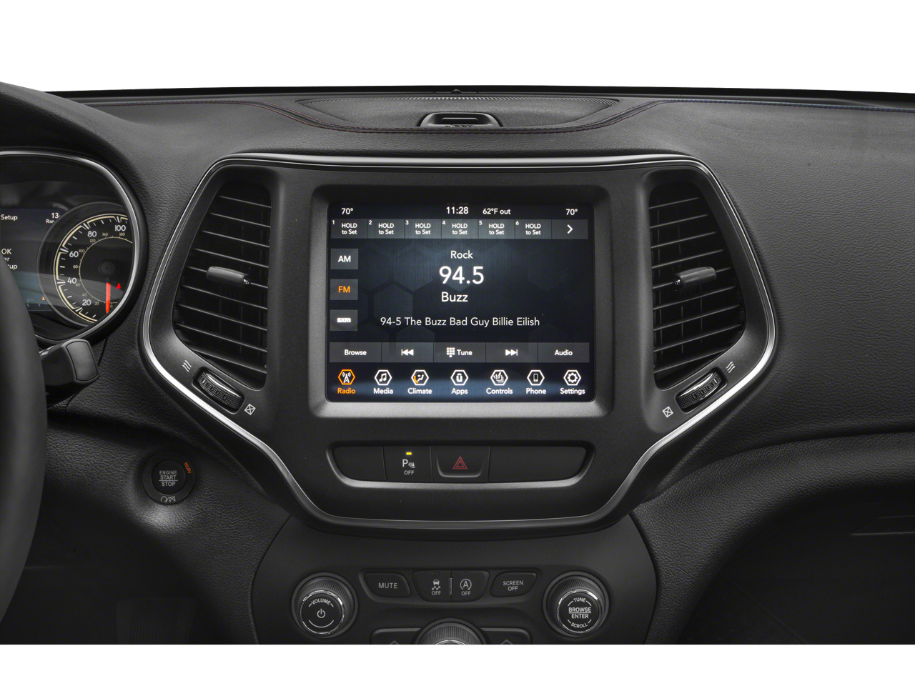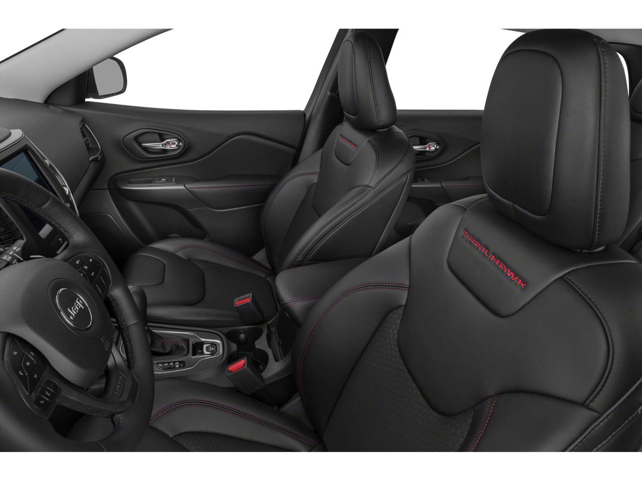 Inside, the Trailhawk's spacious cabin is outfitted with high-quality materials and advanced technology, including the Uconnect 4 infotainment system with an 8.4-inch touchscreen display, Apple CarPlay, and Android Auto. The premium Alpine speaker system and driver's seat memory settings add a touch of luxury to your daily drives.