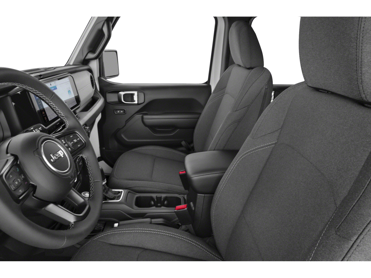 Step inside and you'll be greeted by a wealth of premium features, including the Uconnect 5 infotainment system with a 12.3 display, Apple CarPlay/Android Auto integration, and a rear backup camera. The cloth low-back bucket seats and split-folding rear seat provide ample comfort and flexibility, while the power door mirrors and heated door mirrors add a touch of convenience.