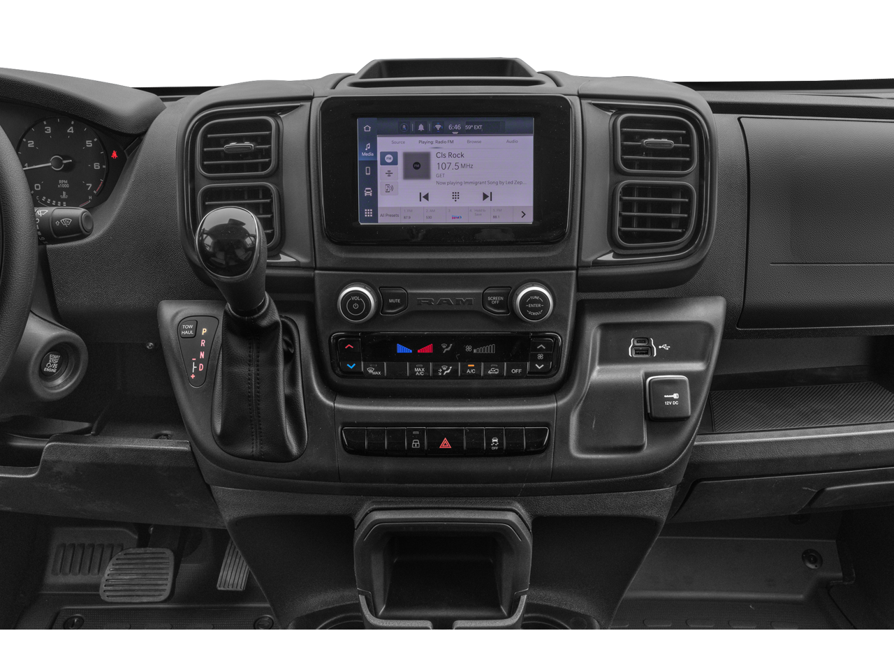 This ProMaster comes equipped with a range of premium features that elevate the driving experience. Enjoy the convenience of wireless charging, seamless smartphone integration with Apple CarPlay and Android Auto, and the stunning 10.1-inch Uconnect 5 navigation display. The adaptive cruise control with stop-and-go functionality ensures a smooth and effortless ride, while the 115V auxiliary power outlet and 4G LTE Wi-Fi hotspot keep you and your crew connected on the go.