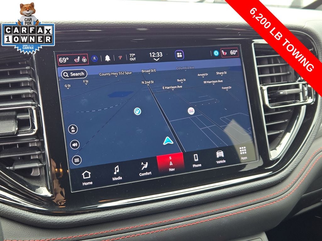 Inside, the Durango GT pampers you with a wealth of premium features, including a Uconnect 5 Nav system with a 10.1 display, dual-zone automatic climate control, a power driver's seat, and a heated steering wheel. The spacious interior offers seating for up to seven, with the flexibility to accommodate your passengers and cargo with ease.